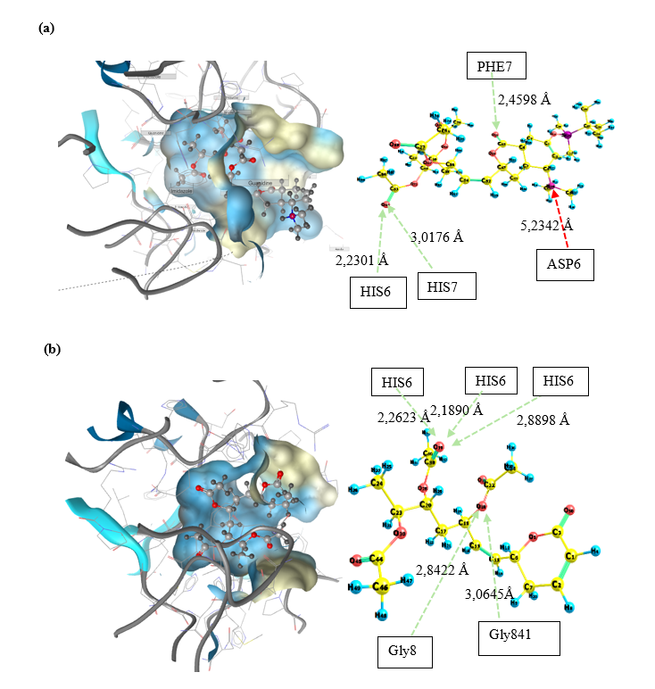 Figure 8 Interaction complexes. HDAC…N,N-dimethylcyclohexylamine-hyptolide (a) and HDAC…hyptolide (b).