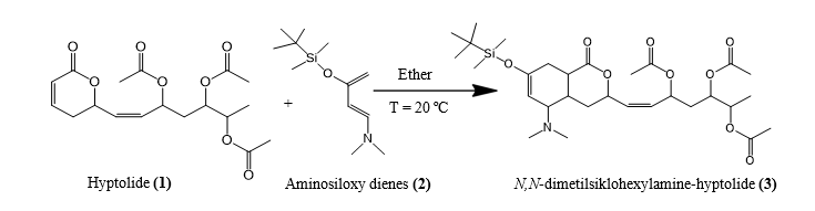 Hyptolide (1) and trans-3-(tert-butyldimethylsilyloxy)-N,N-dimethyl-1,3-butadiene-1-amine (2) |