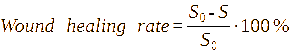 where S0 is the area of the initial wound (cm2) and S is the area of the wound after the reproduced pathology (cm2).