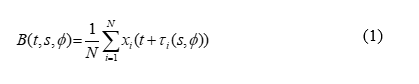 where B (t, s, ∅) is the beamforming output, N is the number of sensors, xᵢ(t) is the signal at the i-th sensor, τᵢ(s, ∅) is the time delay, s is slowness, and ∅ is azimuth.