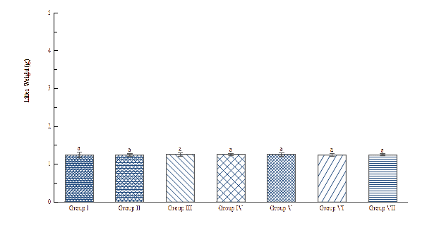 According to Figure 2, there are no notable differences in fetal weight across the groups. This conclusion is supported by the findings from a 1-way ANOVA test, which yielded a p-value of 0.985 (p > 0.05) for all fetal weights. This suggests that fetal weight remains consistent among all treatment groups. Given the absence of significant results from the 1-way ANOVA, a post hoc Tukey test was not performed.
