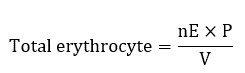 where nE is the number of erythrocytes in 5 R square, P is the dilution factor, and V is the R-grid volume.