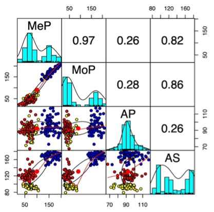 Figure 4 Correlation analysis between the independent variables. The lower triangles contain scatter plots, while the upper triangles display the corresponding correlation values.