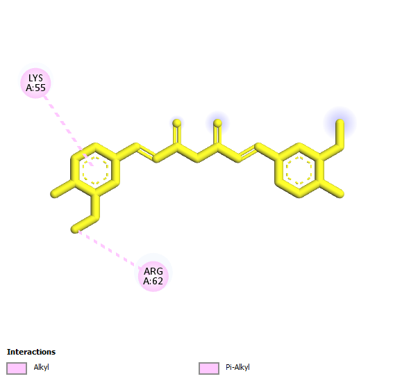 Molecular docking was utilized to present the curcumin potential as antitumor. Proteins target that used were related to inflammatory pathway and, including SOX-2, OCT-4, and IGFBP2. Proteins target were derived from RCSB (rcsb.org/) with PDB ID 8BX2 and 2H7T, respectively then prepared in Autodock 4.2 [12] by discarding water and native ligand. Molecular docking was performed in AutoDock Vina [13]. Proteins target was redocking with native ligand to validated the binding site. The results of molecular docking was binding affinity value from protein and compound interactions. Visualization of the 3D and 2D interaction were done in Discovery Studio 2021 [14].