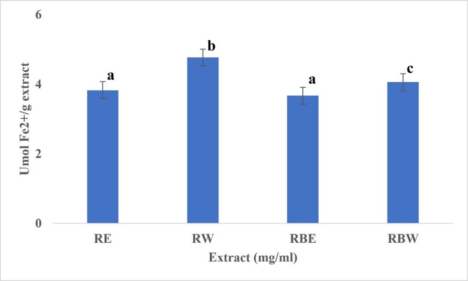 Antioxidant activity of RW, RE, RBW and RBE by FRAP assay
