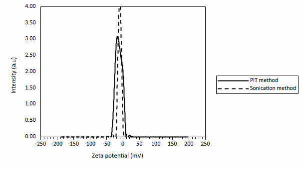 Figure 3 The zeta potential value of the nanoemulsion prepared via sonication and PIT methods.