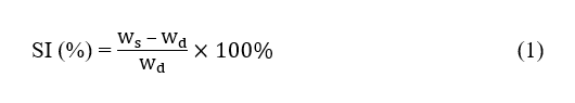 where, SI denotes swelling index (%), Ws denotes wet membrane weight (g), and Wd denotes dry membrane weight (g).