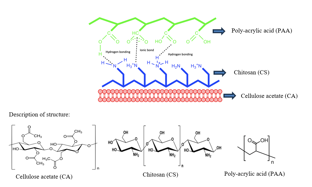 Figure 4 Illustration of the interaction between cellulose acetate, chitosan, and PAA in membrane formation.