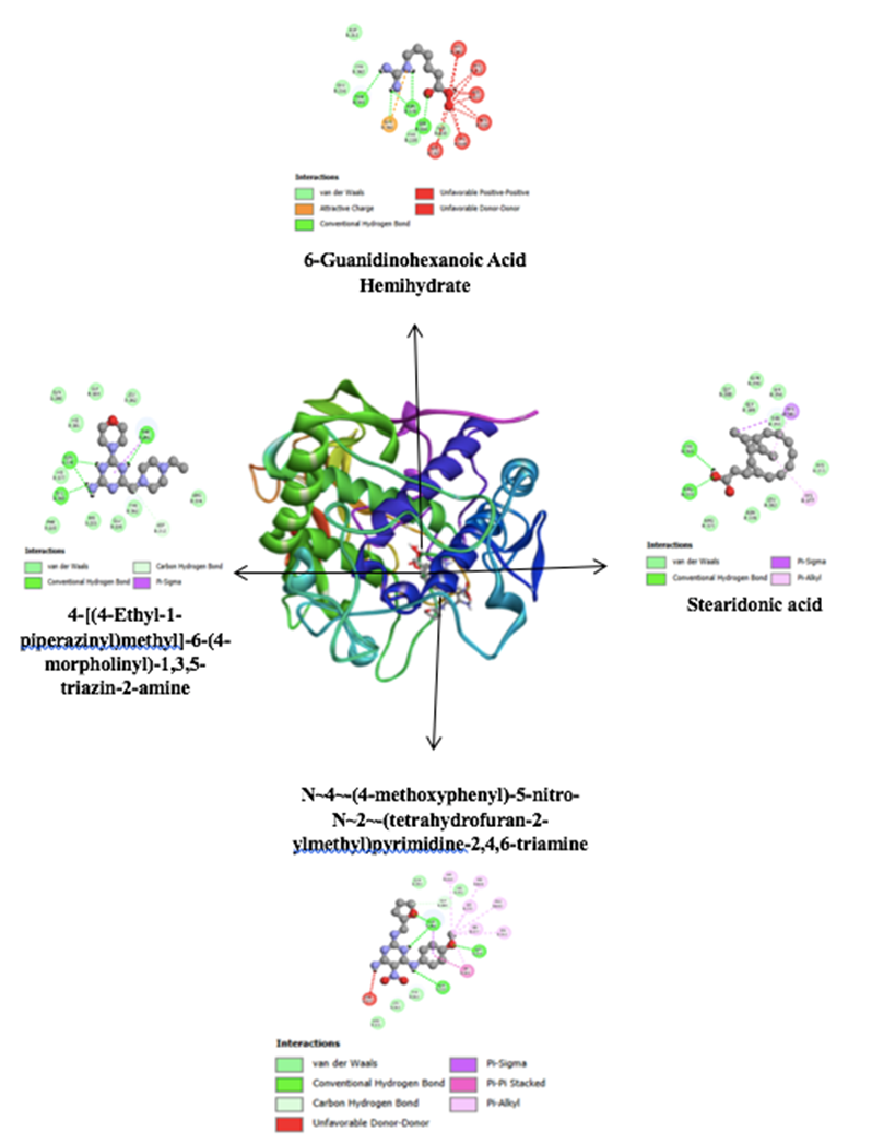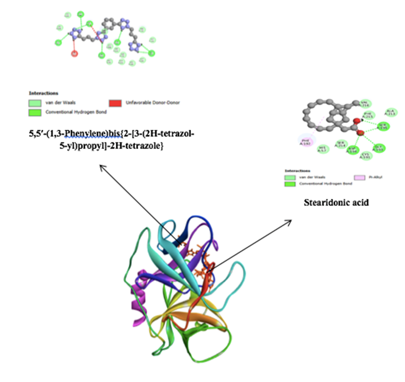 Table 9 Docking score and binding sites of the different ligants with Hyaluronidase.
