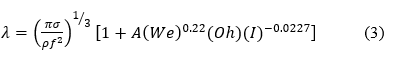Another study introduced to use dimensionless numbers that combined the physic-chemical characteristics of the atomizing liquid with the operating parameters of the ultrasound to propose a connection [36], which is given below: