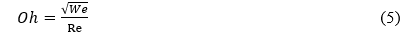 The Ohnesorge number (NOh) is a dimensionless number that relates the viscous forces to inertial and surface tension forces. This dimensionless number can be described as follow: