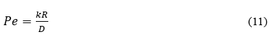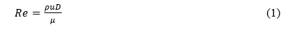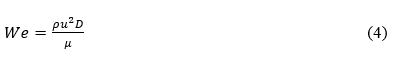 The Reynolds number (Re) denotes the ratio of inertial to viscous forces. The Weber number (We) expresses the relative relevance of fluid inertia in comparison to surface tension. The Ohnesorge number (Oh), which contains fluid qualities, is generated by merging the 2 dimensionless numbers and eliminating the liquid velocity. Thus, correlations based on liquid properties involve: density (ρ), dynamic viscosity (μ), surface tension (σ), atomizer geometry (orifice size or micro hole of the mesh). Others, it also could be determined by operational factors, such as: liquid velocity (ս), may be used to forecast droplet diameter and spray diameter (D). Reynolds and Weber numbers also can be described for the liquid phase, using liquid properties and liquid velocity, or for the gas phase, using the gas properties and gas velocity.