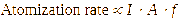 The Intensity Number (I) is associated with the intensity of ultrasonic vibration applied to the liquid during the atomization process. It is expressed in an equation that depends on ultrasonic intensity parameters, and can generally be represented as: