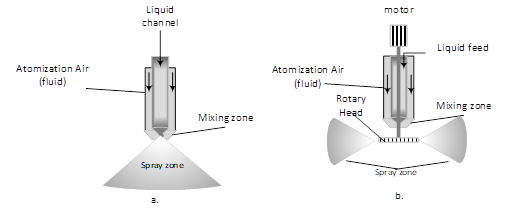 Figure 2 Schematic of 2-fluids atomizer (a) and Rotary Atomizer (b).