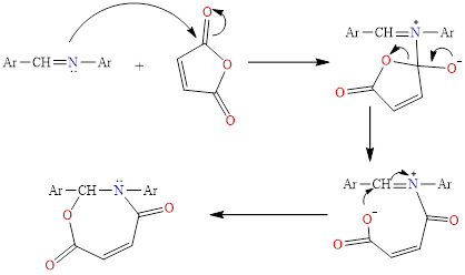 Equivalent moles consisting of (0.001 mole) of one of the prepared Schiff bases (1 - 4) are mixed with (0.001 mole) of maleic anhydride in (20 mL) of dry benzene. The reaction mixture ascends for (4 h). After that, the solution is concentrated under pressure. Sieve,