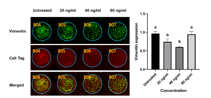 Figure 6 Lower expression of Vimentin in the BK-AgNPs-treated groups compared to the untreated group based on the ICW assay (p ≤ 0.05).