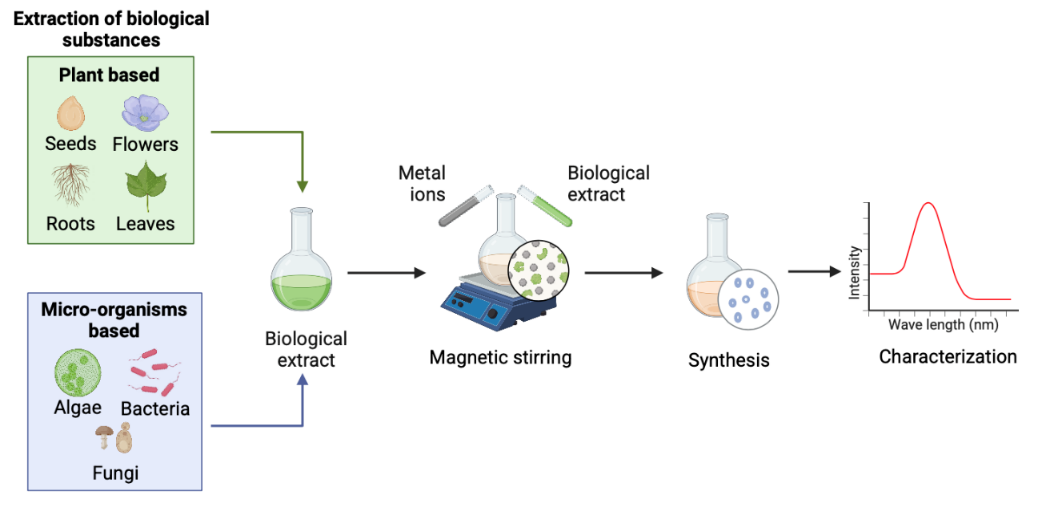 Figure 1 Methodology for the green synthesis of nanoparticles using biological extracts.