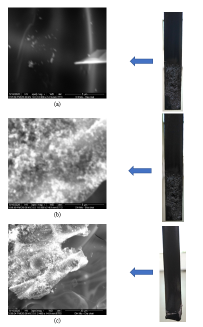 Figure 10 Char morphology of the external coating formulations: (a): 3 % W nanoclay; (b): 5 % W nanoclay; (c): 7 % W nanoclay.