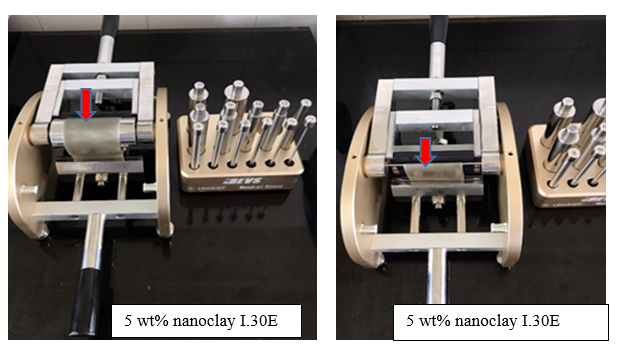 First, Nanoclay I.30E (1, 3, 5 and 7 wt%) was pre-dispersed in acetone under vigorous magnetic stirring at 600 rpm for 2 h to break up agglomerates. The mixture was then subjected to ultrasonic dispersion for 30 min to enhance exfoliation. After that, Epoxy Epikote 240 was gradually added while continuously stirring for another 1 h at 50 °C to ensure uniform mixing.