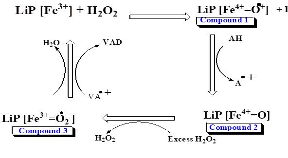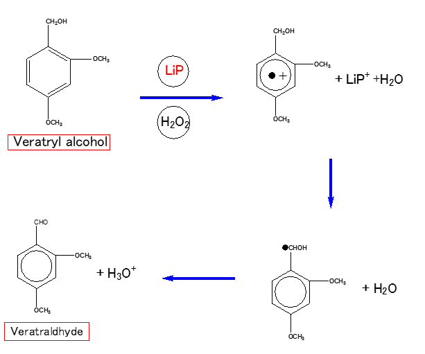 H Wariishi, J Huang, HB Dunford and MH Gold. Reactions of lignin peroxidase compounds I and II with veratryl alcohol. Transient-state kinetic characterization. Journal of Biological Chemistry 1991; 266(31), 20694-20699.