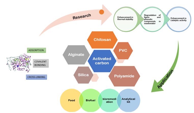 This review encompasses crucial aspects of LiP, including the sources and classification of lignin. These classifications illustrate the complexity of lignin with different phenolic structures linked via C-C and C-O bonds, which affect its reactivity and potential as a feedstock for multiple applications. This review highlights the key applications and advantages of lignin peroxidase (LiP) across diverse fields. The study reveals the remarkable efficiency of LiP in degrading recalcitrant compounds, which are often resistant to traditional treatment methods. LiP’s role in the biofuel sector plays a vital role due to its ability to catalyze the degradation of lignin within lignocellulosic biomass, which significantly enhances the production of fermentable sugars for bioethanol synthesisas seen in the treatment of corn stover, ultimately leading to higher glucose yields. This enzymatic action increases the glucose yields from biomasses as well as aids in the fermentation process by fostering yeast activity, converting sugars into bioethanol and CO2. The pharmaceutical industry benefits from LiP through its ability to facilitates the biotransformation of drugs which can thereby enhance drugs efficiency. For example, the degradation of pharmaceutical pollutants, including drugs such as diclofenac, underlines its potential for environmental cleanup efforts in wastewater treatment. Furthermore, in the food industry, LiP’s ability to degrade phenolic compounds enhances food safety and food quality as it helps flavors through the production of natural compounds like vanillin and o-quinones. This functionality aligns with consumer demand for clean and high-quality food and beverages.