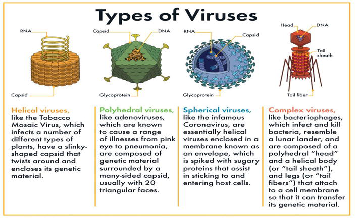 Viruses are infectious microorganisms that replicate inside the host cell. Viral particles are unable to replicate like most other forms of life. In response to viral infection, the host cell must quickly replicate the invading virus in an enormous number of copies [1-4]. The infected host cell becomes a breeding ground for new viruses, which may change and develop thanks to their genes, unlike simpler infectious agents. The number of known viral types exceeds 5,000 [5-7]. Viruses have no known genesis. Some are bacterial in origin, while others developed from plasmids (DNA fragments capable of transferring between cells). Viruses are always composed of 2 or 3 pieces. A lengthy molecule that holds genetic information is the first component, the gene. Genes may be composed of either DNA or RNA [8-11]. The second component is a gene-protecting protein layer. Encouraging some viruses to enter host cells, a lipid coating encases their protein coat and binds to certain receptors. Viruses may take many forms, from basic icosahedrons and spirals to more intricate geometries. There are 33,000 to 500,000 viruses per centimeter, given that viruses range in size from 20 to 300 nm [12-16]. There are a lot of ways that viruses may propagate. There are a lot of viruses that can only infect certain kinds of hosts or types of tissues. The replication process is essential for all viruses [17,18]. Vectors, which may include insects, are responsible for transmitting viruses from 1 plant to another. Viruses in animals, including humans, may transfer from 1 host to another by direct contact with infected blood, saliva, or other body fluids. When people cough or sneeze, they release moisture droplets into the air, which may carry viruses like the influenza virus [19-22]. The fecal-oral cycle is a vector for the transmission of viruses like norovirus via contaminated hands, food, and water. The most common way to get rotavirus is to touch a sick youngster. One of the ways that human immunodeficiency virus (HIV) may be spread is via sexual contact and other body fluids. Bloodsucking insects are the vector for the transmission of some viruses, such the dengue virus. Diseases may be caused by viruses in plants, animals, and people alike [23-27]. Nonetheless, the immune system of the host organism often eliminates them, and the host develops a permanent resistance to them. Viruses are immune to antibiotics, however there are antiviral medications that may cure serious viral infections. Some viral infections may be prevented using vaccines that provide long-term or permanent protection [28-31]. Today, the Chamberland filter - also called the Chamberland-Pasteur filter - was designed by French microbiologist Charles Chamberland in 1884. Because the holes of this filter are smaller than those of bacteria, he was able to successfully strain a bacterial solution by passing it through it [32-35]. Russian scientist Dmitri Ivanovsky used this filter in the early 1890s to study the Tobacco mosaic virus, which gained widespread recognition at the time. Extracts from crushed diseased tobacco leaves maintained their infectiousness after filtering, according to his research [36-40]. Simultaneously, more than a handful of researchers demonstrated that these agents, which would subsequently be known as viruses, could nonetheless infect humans despite their size being almost a tenth that of bacteria. This factor replicates only in cells that are dividing, as noted by the Dutch scientist Martinus Beijerinck in 1899 [41-44]. He dubbed it “soluble living matter” as he was unable to determine the composition of the agent’s particles. At the turn of the twentieth century, 2 bacteriologists - Frederick Tourette of England and Felix Drell of France and Canada - described viruses that infected bacteria and destroyed bacteria cultured on agar. He was able to determine the viral load in the suspension by counting the places where bacteria had been destroyed [45-50]. The first pictures of viruses were captured in 1931 when German engineers Ernst Ruska and Max Knoll invented the electron microscope. The majority of the tobacco mosaic virus was shown to be protein in 1935 by American scientist and virologist Wendell Meredith Stanley [51-53]. The arane and protein components of this virus were isolated shortly thereafter. Researchers back then had no idea how to culture viruses in a controlled environment; this was a major obstacle to their work. In 1931, the issue was resolved when Ernest William Goodpasture and Alice Miles Woodruff, 2 American pathologists, succeeded in cultivating influenza and other viruses in fertilized eggs [54-58]. In 1949, researchers John Franklin Enders, Thomas Huckle Weller, and Frederick Chapman Robbins successfully cultivated Human enterovirus C in live animal cell cultures, overcoming the challenge of growing some viruses in eggs. More than 5,000 different viral kinds have been identified so far using these approaches. Virion, another name for a virus particle, is a protective protein coating that encases DNA or RNA genes. The many tiny, identical protein molecules that make up this capsid are known as capsomers [59-62]. Capsomers may have a variety of arrangements, including icosahedron, helical, and more intricate ones. The nucleocapsid is a protein-containing outer shell that encases DNA or RNA. An envelope of lipid surrounds certain viruses. Viruses are so tiny that they are only visible under an electron microscope; a light microscope is unable to reveal them. In terms of size, they range from 20 to 300 nm [63-66]. A centimeter (0.39 inches) in length contains anything from 33,000 to 500,000 viruses due to their minuscule size. Cells of more complex creatures may measure tens of micrometers, whereas bacteria usually measure about 1 µm (1,000 nm). Mega viruses and Pandora viruses are 2 examples of viruses that are quite huge, measuring around 1 µm [67-70]. The discovery of these 2 amoebas-infecting vi