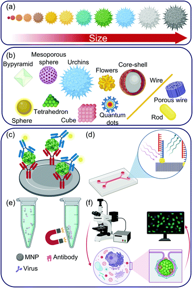 Noble metal nanoparticles have significant plasmonic, catalytic and electronic properties. They can interact with various biological molecules such as oligonucleotides, aptamers and antibodies. Nanostructures such as gold nanoparticles are biologically ineffective, and with this feature, they are suitable options for the establishment and stabilization of proteins without the possibility of denaturation. Gold nanoparticles are the most widely used inorganic Nanostructures for virus detection. These nanoparticles have been used a lot, especially in the detection of SARS-CoV-2. For example, a kit containing gold nanoparticles produced in yeas 2020 detects SARS-CoV-2 within 15 min and with an amount of 10 - 20 µL of blood serum. Tamiflu is an antiviral drug known by the generic name of oseltamivir, and resistance to it is especially important and dangerous in patients with blood malignancies. Figure 7 shows how the system based on gold nanoparticles works in the detection of influenza virus resistant to Tamiflu. Magnetic nanoparticles, quantum dots, silver nanoparticles, and silicon-based nanoparticles are other inorganic Nanostructures that have been evaluated and used to detect viruses. Organic frameworks, including covalent organic frameworks (COFs) and organic-metallic frameworks (MOFs), dendrimers and molecular template polymer nanoparticles are considered to be the most important organic Nanostructures in the field of virus detection.
