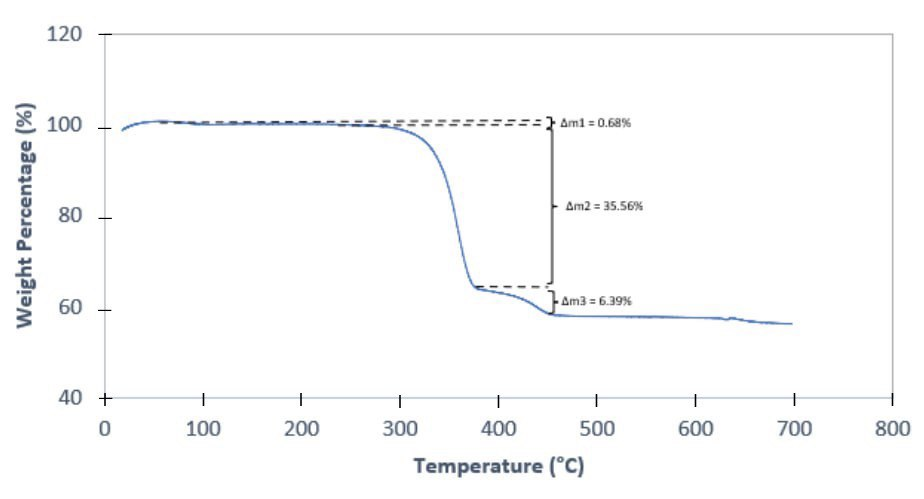 occurring between 200 and 375 °C, resulted in a gradual weight loss