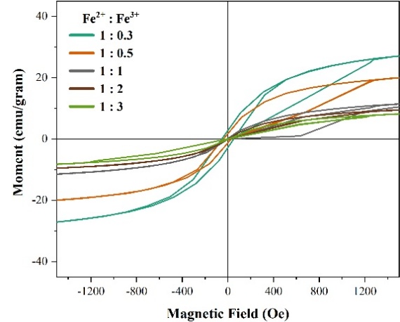 Figure 7 (a) VSM Loop hysteresis of composite with variation of Fe2+: Fe3+ (mole/mole).