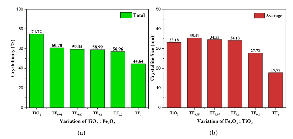 Figure 3 (a) Crystallinity index, (b) Crystal size of photocatalyst composite.