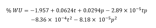 Analysis of the CCD showed that the quadratic model adequately described the relationship between plasma parameters and water uptake (WU). Below is the fitted quadratic model used in the analysis: