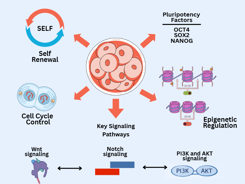 Coordination between transcription factors and signaling networks is crucial for stem cells to remain pluripotent and respond to physiological needs [3]. Disruption of these networks, whether due to genetic mutations or dysregulated signals from the microenvironment, can result in loss of stem cell identity, premature differentiation, or neoplastic transformation [51].