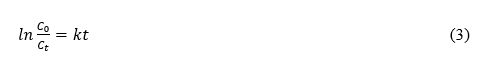 The values evidence and in accordance with the performance of materials. In general, all DE data represents a comparable activity to similar materials were reported by previous works as listed in Table 5. In addition, the fitness of MV degradation reaction to the pseudo-first order kinetics is summarized from all listed works.