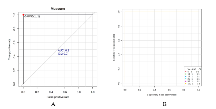Model performance was assessed using the cumulative explained variance (R2 cum) and predictive capability (Q2 cum), with values above 0.5 considered indicative of acceptable model quality and values approaching 1.0 reflecting superior predictive power. Discriminatory metabolites between regional groups were identified using Variable Importance in Projection (VIP) scores greater than 1 in conjunction with significance thresholds of p-value < 0.05 [21-22]. The combination of VIP-based selection and statistical validation allowed for the delineation of robust metabolite markers underlying regional discrimination of pempek.