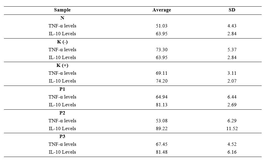 ELISA analysis of serum TNF-α and IL-10 levels