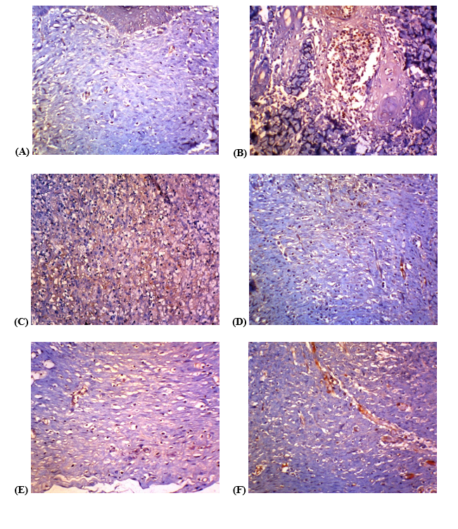 Histopathological examination of collagen was conducted using collagen protein scoring, which predominantly assesses connective tissue deposition in the skin. The Masson’s Trichrome staining method was employed to evaluate hemostatic capacity, platelet interactions, fibronectin activity, enhanced fluid exudation, cellular components, and growth factors, ultimately promoting fibroplasia and epidermal proliferation in diabetic wound models [51].