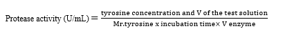 Protease activity is determined by reacting a protease extract sample with a casein substrate. Protease activity is expressed as a concentration based on the amount of tyrosine released, which is read at 275 nm.
