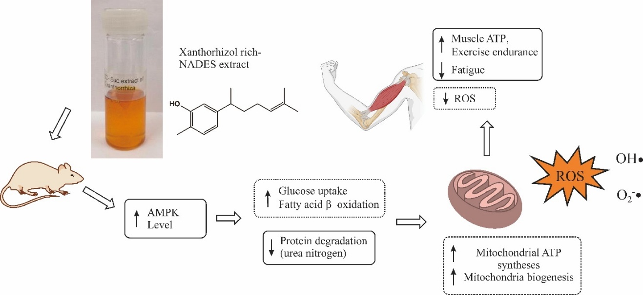 Keywords: AMPK, ATP, Choline chloride-sucrose, Deep eutectic solvent, Fatigue, Taurine, Xanthorrhizol