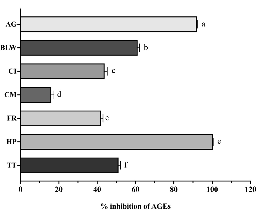 methylglyoxal (MGO)-induced model. Percentage inhibition of AGEs