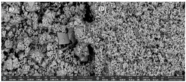 A variety of techniques were employed for the characterization of ZnFe₂O₄ and ZnFe₂O₄/SnO₂ composites. Structural analysis was conducted using X-ray diffraction (XRD PANalycal) across the 2θ range of 10 - 90 °. Absorbance and band gap energy were assessed via Diffuse Reflectance Spectroscopy (DRS) utilizing a Cary 60 UV-Vis DRS apparatus. Material morphology, element composition, and element distribution were analyzed using a Scanning Electron Microscope (SEM) equipped with Dispersive Energy X-ray spectroscopy (EDS mapping) (SEM-EDS Hitachi Flexsem 100). The saturation magnetization was measured using a vibration sample magnetometer (VSM OXFORD 1.2 H) at a temperature of 298 K, within a magnetic field range of –18.0 to +18.0 kOe.