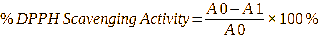 where A0 is the control absorbance of DPPH solution (without sample), and A1 is the final absorbance of the DPPH solution after reaction with the sample.