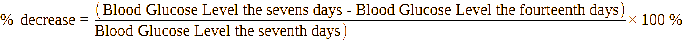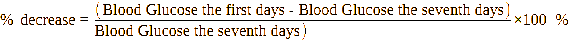 After treatment the percentage of decrease in blood glucose in the group after being treated using the following formula.
