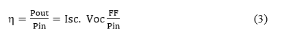 where Pin is the power input from the light source of the solar cell and Pout is the power output [34].