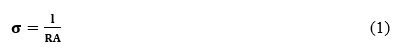 σ = is conductivity (Ω−1·m−1); R = is for resistance (Ω); l = distance of 2 electrodes (m); A = cross-sectional surface area of the electrode (m2)