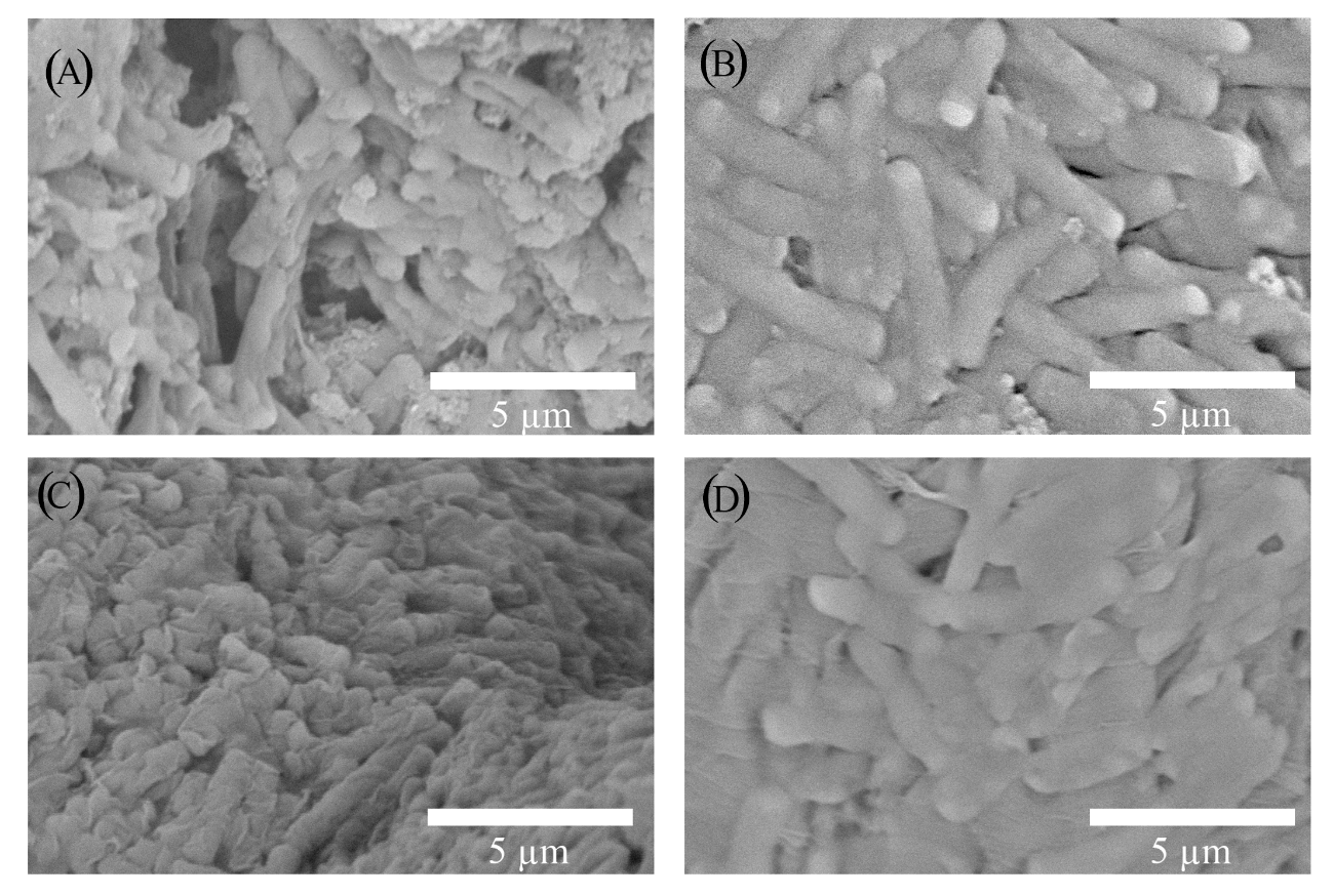 Scanning electron microscopy (SEM) was utilized to analyze the morphological characteristics of bacterial cells following the methodology outlined by Kommanee et al. [15]. B. subtilis was cultured in nutrient broth, from which cells were harvested during the logarithmic growth phase, followed by centrifugation at 2,500× g for 10 min. Subsequently, the cells were given 2 washes with phosphate buffer (pH 7.4). After dissolving the cell precipitate, the final concentration reached 106 CFU/mL. Next, each weed extract was incubated with 500 μL of B. subtilis cell suspension at 37 °C for 2 h. The incubated bacteria were fixed using 2.5 % glutaraldehyde in phosphate buffer at pH 7.4. Cellulose filter paper was immersed carefully in the cell solution. Then, the fixed materials were dried using sequential immersion for 15 min each in ethanol solutions of increasing concentration (30, 50, 70, 90, and finally 95 %). Subsequently, an ion sputtering coater (Hitachi; MC1000; Japan) was used to apply a gold coating to the dried specimens, which were then analyzed using SEM (Hitachi; TM4000 Plus; Japan). Similar procedures were followed for the negative controls, except that Phosphate buffer saline (PBS) at pH 7.4 was used to culture the bacterial cells instead of weed extracts.