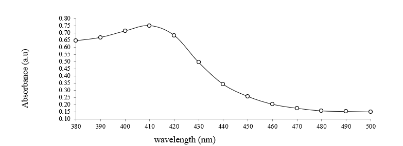The qualitative tests for phenolics and flavonoids serve as an initial screening to confirm the presence of these compounds in Moringa leaves, which can act as bio-reductors in the synthesis of AgNPs. As indicated in Table 2, the Moringa leaf extract tested positive for phenolics and flavonoids content.