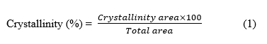 X-ray diffraction (XRD) analysis was carried out to assess the crystallinity of the cellulose samples, following the procedures outlined by Rachtanapun et al. [23] and Haleem et al. [24]. Prior to testing, all samples were dried in a hot-air oven at 105 °C for 3 h. The analysis was performed over a scattering angle (2θ) range of 1 to 80 °, with a scanning rate of 5 °/min. The crystallinity of the cellulose was using the following equation: