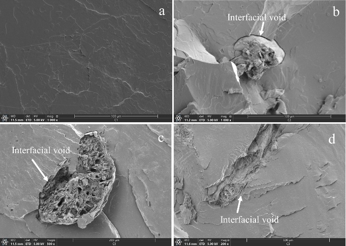 Tensile testing was performed in accordance with ASTM D638 using a Universal Testing Machine (INSTRON, 5567) at room temperature. The test was conducted with a crosshead speed of 5 mm/min and a gauge length of 1 inch. The reported values represent the averages of ten replicated specimens. Additionally, the composites were analyzed using field-emission scanning electron microscopy (FE-SEM) (Hitachi, 4700e) to reveal the morphological structure of the composite surface.
