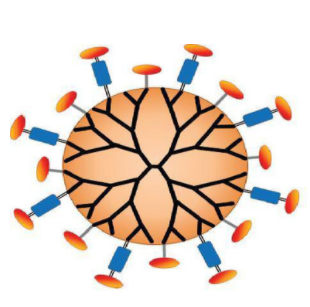 Figure 12 Drug molecules on the surface of dendrimers (red) [45].