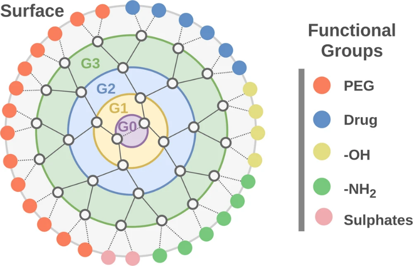 Due to their symmetrical forms, single scattering, and branching structure, several dendrimers with distinct functionalities have been synthesized in recent years for use in laboratory and experimental study. These are a few dendrimers with various characteristics [79,80].